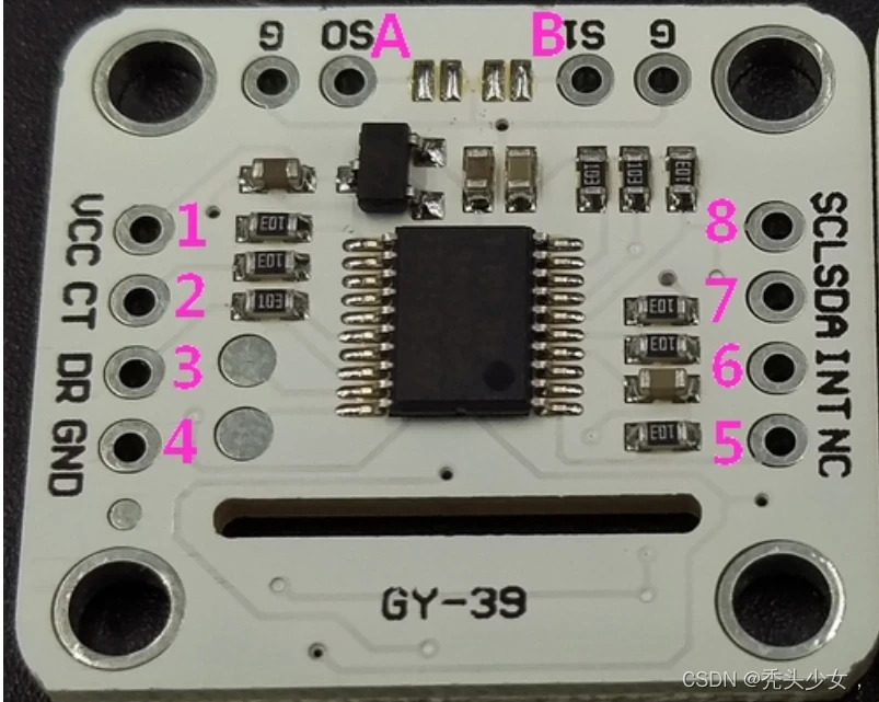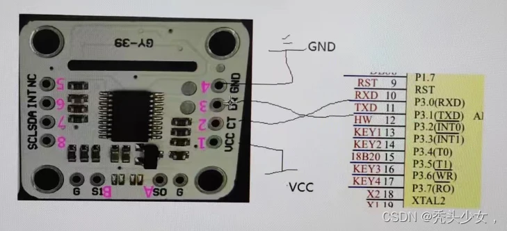 在此模块中,有两种方式读取数据,即串口 UART( TTL 电平)或者 IIC( 2 线)。这里就是利用C51的串口采集GY-39的数据。