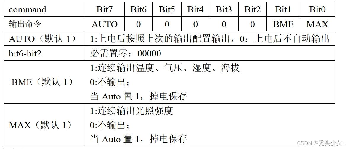发送命令: 0xA5+0x82+0x27,表示连续输出温度、气压、湿度、海拔,掉电后保存该设置,重新上电后将自动连续输出;