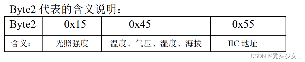 当第三位的数据位为 “0X45” 表示这个数据帧为温度、气压、湿度、海拔数据的数据帧